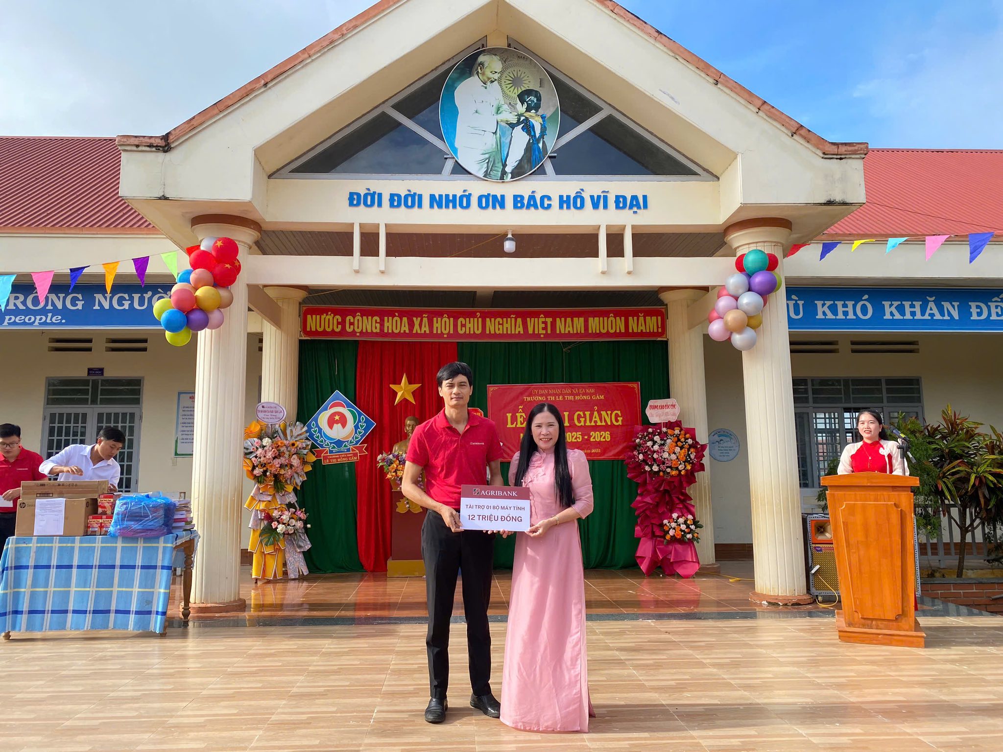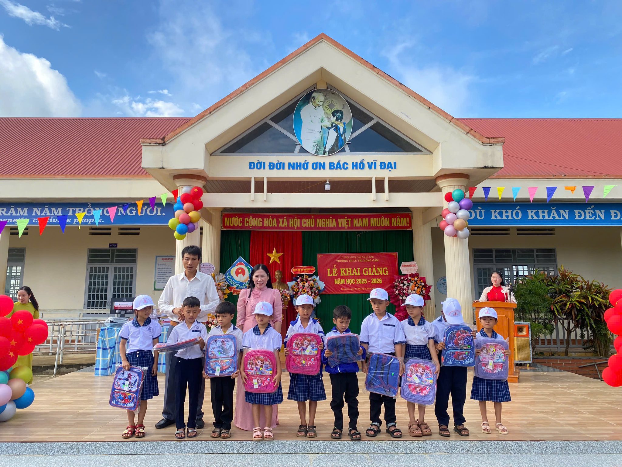 Hân hoan trong không khí tưng bừng, rộn rã cả của ngày tựu trường, các em học sinh được trao tặng những chiếc cặp xinh xinh, những trang vở trắng tinh, và chiếc máy tính để có thêm đầy đủ đồ dùng và trang thiết bị học tập.
